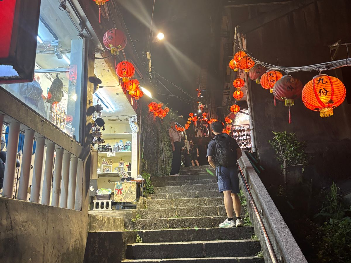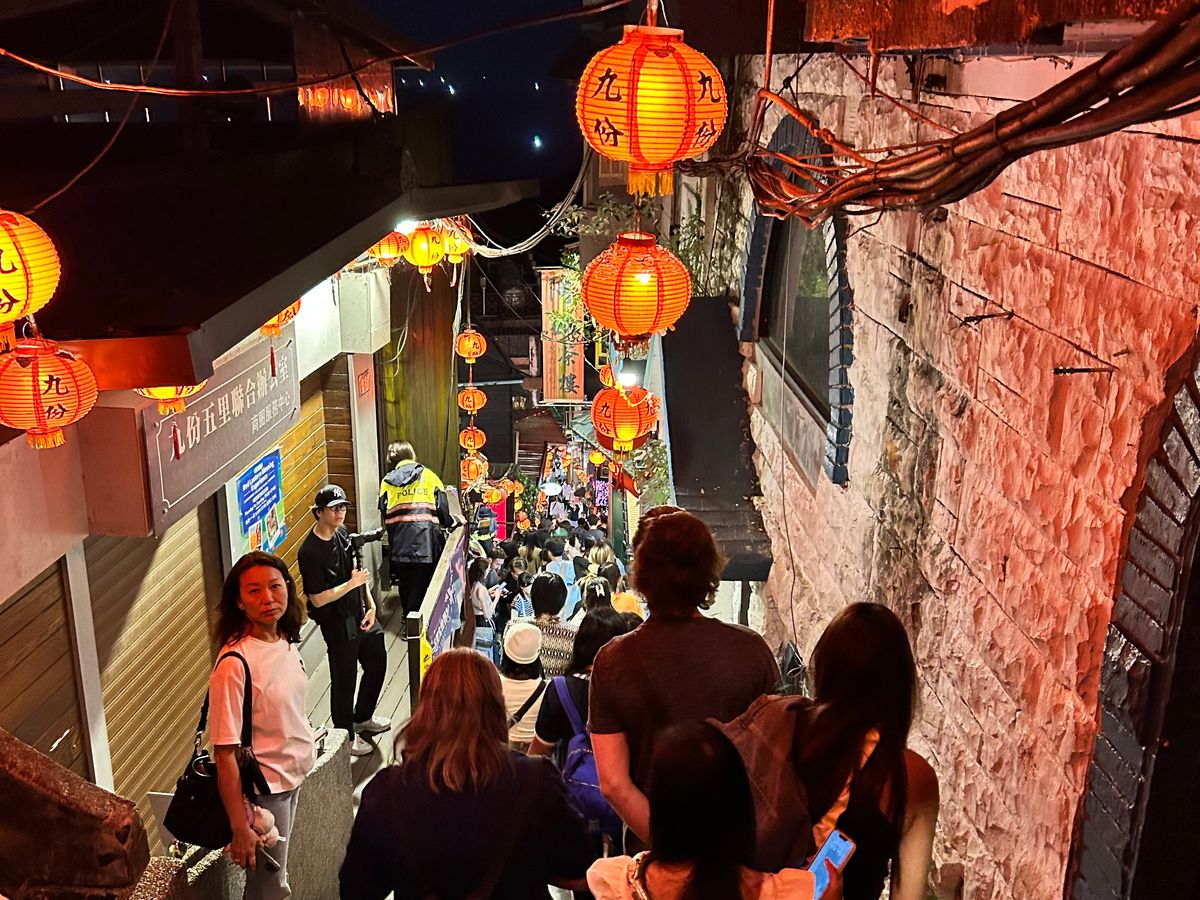 雨の九ふんは本当に滑りやすいです。スニーカーで行ってください!