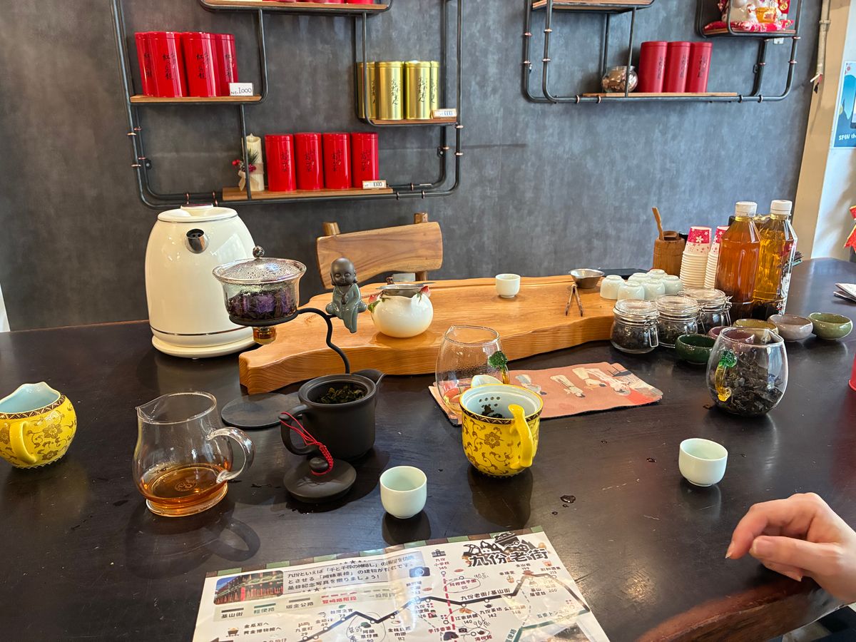 ガイド(てい)さんのおかげで楽しい九分と十分のツアーになりました。特に九分は1グループに詳しいマップをいただき、美味しいお店を紹介してもらい回りながら試食をして、美味しいお茶やお菓子を買う事が出来ました。