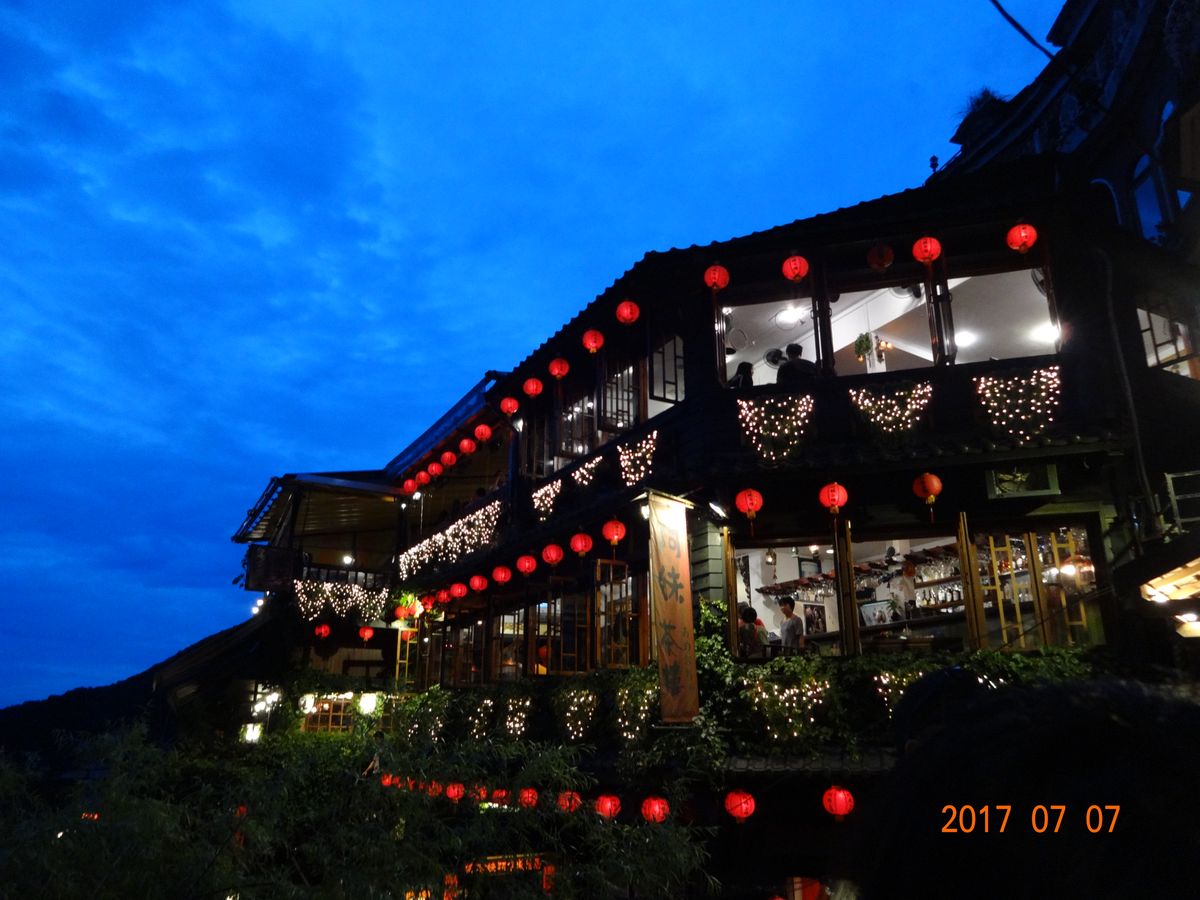 十分天燈上げは自分達で天燈に字を書いて完成させて行くのが楽しく、上げた時には感動しました 九份は雨も降らず、阿妹茶酒館もじっくりと見学出来て大満足な行程でした