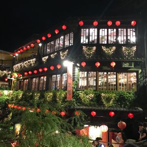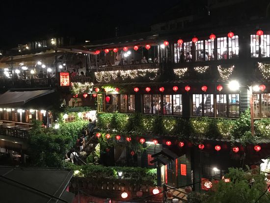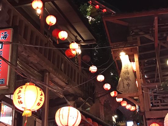 夕食なしプランでの夜の九分観光でしたが、十分楽しめました。夏休み最終週平日でも待合せ場所の観光センター(お土産物屋)はたくさんの人で、当日はバス8台が出るという事だったので、ここの口コミにあったように週末はもっと混むのかもしれません。九分は階段の傾斜がきついので歩きやすい靴で行って正解でした、これも前の口コミから参考にしました。当日ヒールで参加していた方もいましたが、ヒールは大変です。雨が降っていなかったので夕暮れ時の海が見えてとても綺麗でした。私たちは家族3人で阿妹茶屋に入り、夕暮れ時から暗くなるまでゆっくりお茶を楽しみました。混んでいるかと思い気や、なんとか並ばずに入れたのは夕食時で、ここのお茶屋さんではお茶しかなかったからかも。建物の写真を撮る人は多かったので人気写真スポットですね。最初から夕食は食べずに観光だけしようと思っていたので食事なしで十分でしたし、九分観光の後は夜市も散策できたのでリーズナブルでとても良かったです。中国人ガイドさん、一生懸命日本語で観光案内をしてくれて、若干聞きづらい点もあったけれど、笑顔でカバー。好感が持てました。