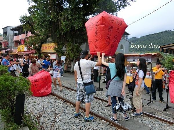 当日は出発した時に土砂降りで、天燈上げは無理かもしれないから先に九份に行って様子を見ようと提案されました。結果、九份に着いたときには小雨になり、十分に着いたときには雨も上がり無事行うことができて感謝しています。