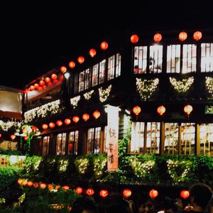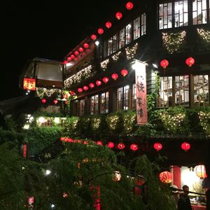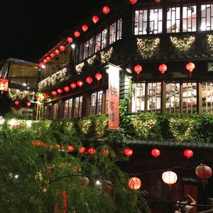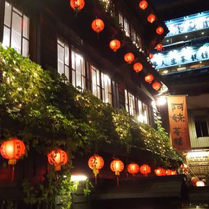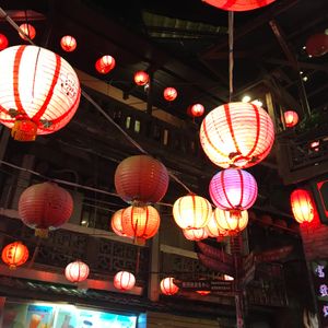 いろいろなお店に立ち寄っていると、いよいよ暗くなって提灯に灯がともり、幻想的な景色になってきました。と同時に、夜到着のツアー客がなだれ込んできて身動きがとりにくい状態に。何とか写真を撮りつつ、集合時間まで九份を満喫しました。昼と夜、両方の景色が楽しめたので、夕方到着のツアーを選択して正解でした。