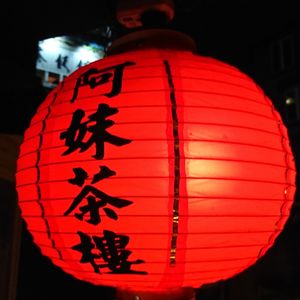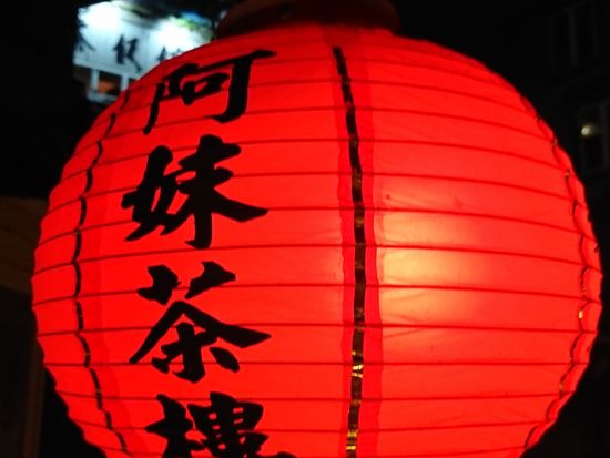 まだ明るさの残る時間帯のためか、到着時はそれほど混んでいなかったので、写真を撮りながらゆっくりと階段を登り、ガイドさんおすすめの阿妹茶酒館でお茶を飲みました。真夏の台湾は猛暑なので、飲み放題は助かりました。当然がぶ飲みです(笑)