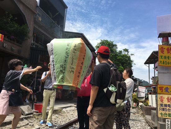 9時に迎えに来ていただき、十分瀑布、十分で天燈上げ、猫村、九份とサクサクと回ることができました。十分の天燈上げは初めてでしたが、願い事を書いた天燈が空に昇っていく様子は感動的でした。猫村は昼で暑かったせいか、思っていたよりも猫が少なかったですが、夏なので仕方ないですね。