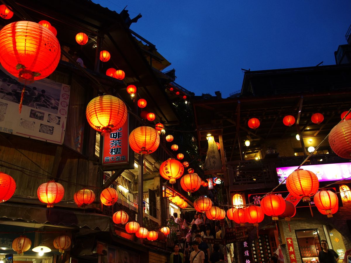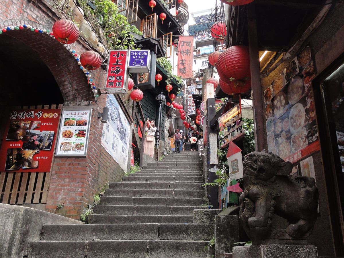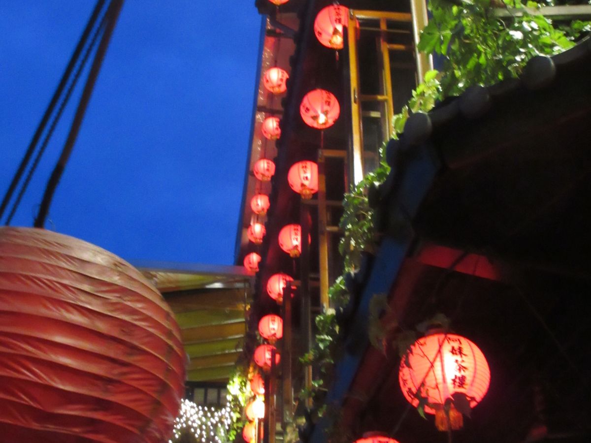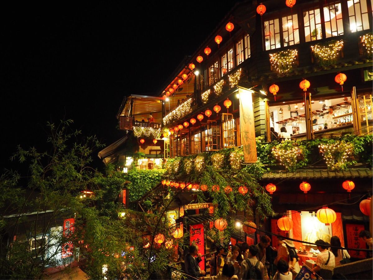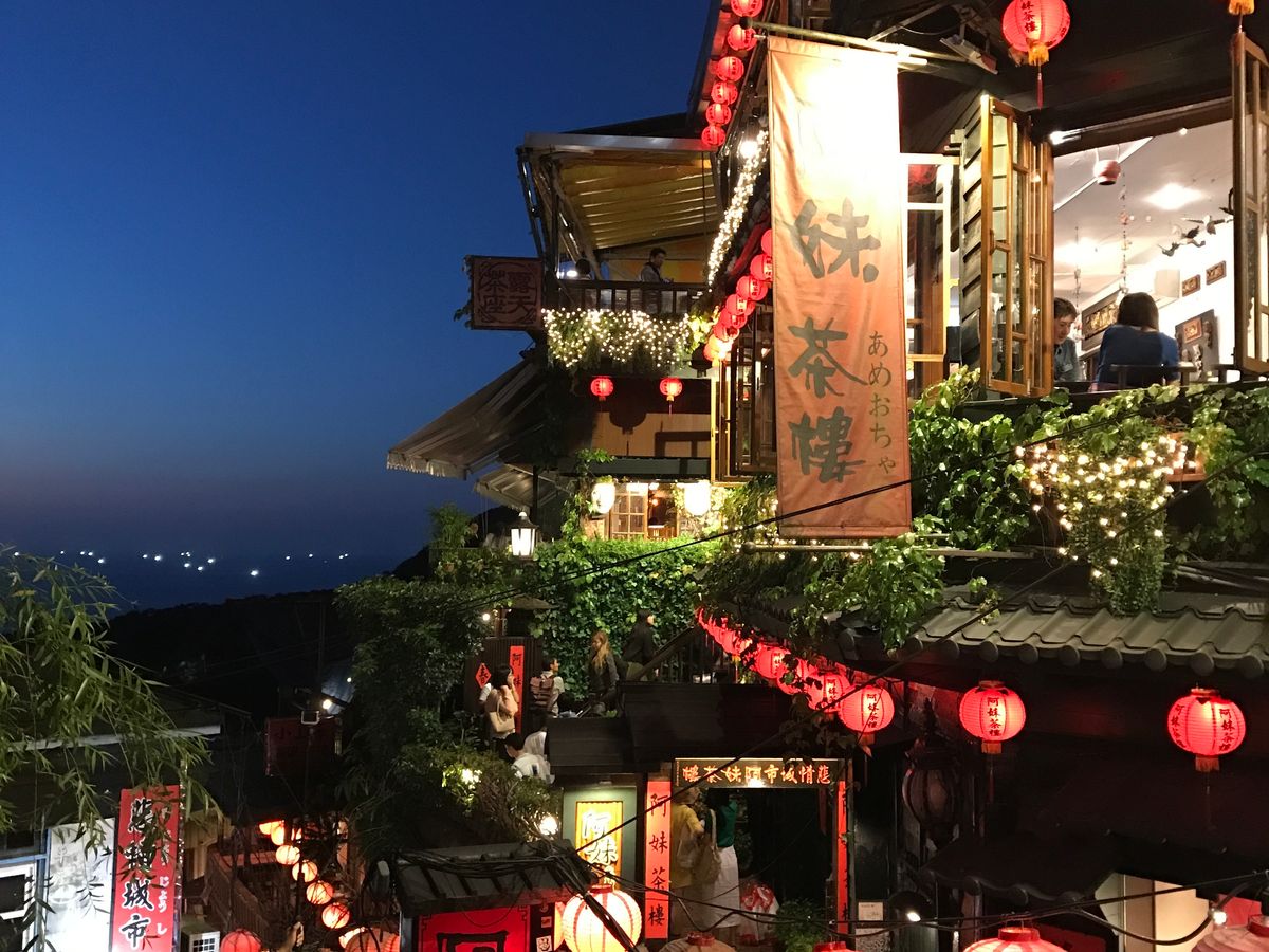初めての台湾で、台北といえば九份へ行きたいとまず思いましたが、自力で九份まで行く自信が無かったので、ツアーに申し込みました。まず集合してバスに乗り込んで早々に市内での夕食でした。期待は全くしておりませんでしたので、やはり予想通りの内容でした。夕方5時頃で全くお腹も空いておらず、いたって普通の鍋の様な物で、ほとんど食べられませんでした。そして九份へ。ガイドさんの楽しい話しを聞いている間に、3.40分程であっという間に到着しました。九份は年間200日は雨と言ってましたが、見事に雨が降ってきました。夜の九份、とても雰囲気があり、提灯の明かりが幻想的で独特な場所でした。九份自体は見て回るには30分程で一回り出来る程の規模でした。夜市もとても活気があり、毎夜開催されているのかと感心する程の活気と熱気でした。思った以上にスムーズな行程で、ツアーに参加して正解でした。