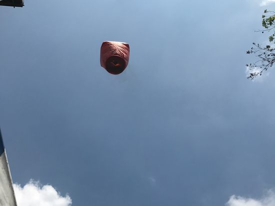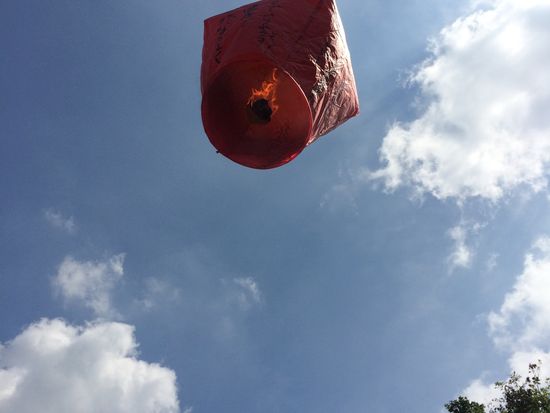 ガイドさんはせめて涼しいお店で。。ということでしばらく線路沿いに歩き、駅に近いお店を選択。店内で、しかもやや涼しい。細かな配慮を感じられました。その後は願い事を書いて空へ。お店のお兄さんに言われるがまま決めポーズを数枚。火をつけてもらい3.2.1で手を放すとす~っと空へ登って行きました。