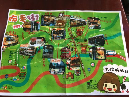 十分、九分では手作りの地図を下さり、面白いお店、美味しいお店、素敵な景色の場所など、すべて書き込んでありました。