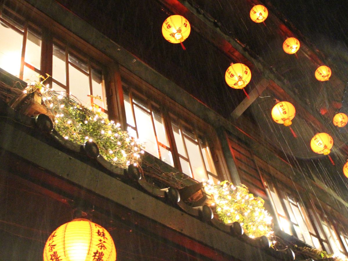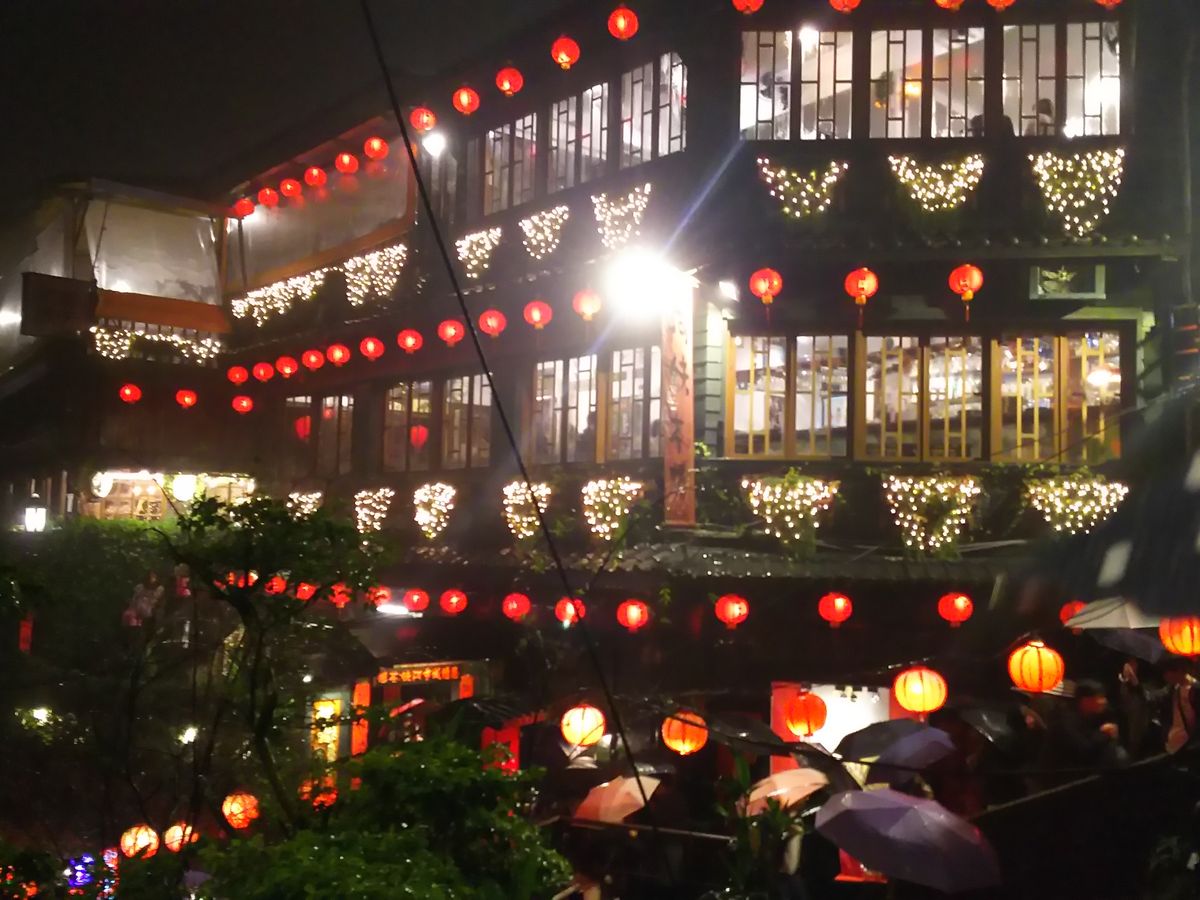 しかし、ガイドさんからの雨でなければ「九份」ではない(冬〜春ほとんどが雨)といわれ、気分転換して楽しみました。散策しているうちに、雨も少しだけ弱まり、楽しむことができました。赤提灯に照らされる雨や建物は幻想的で、九份にある茶屋(九份茶坊)での烏龍茶ケーキとお茶も堪能できました。本当に行って良かったと思っています。