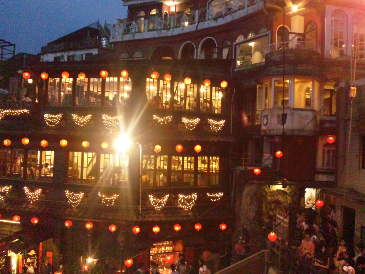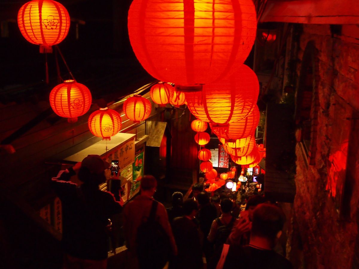 3月19日に九份ナイトツアーに参加しました。3連休中日の日曜で混雑するのは当たり前ですが、九份ビギナーにはつらいツアーでした。当日小雨状態で、台北市内金龍土産店で集合しバスに乗車後、失礼話しですが、アルバイトのような若い男の子が添乗員としてバスの中で九份についての説明、本日の工程、などを説明しながら手書きの九份マップを2名で1枚と配布しました。バスが先ず到着した駐車場には、非常に多くの観光バスが既に並んで駐車しており、ここから日曜なので地元のバスに乗り換えるルールということでしたので、雨の中長い行列に並びバスが来るのを待つ、そしてようやく地元のバスが来て乗車早々に九份近くの駐車場に到着、ツアーにセットされた簡単な夕食(軽食)を食べ集合時間だけ言われ、各々各人で勝手に観光して来いという式で駐車場からどっちに行っていいのかわからず、適当にバスやタクシー自家用車がバンバン走る細い危険な道路を歩きさまよいかなりの時間をかけて有名と言われる商店街に続く場所に着きました。しかし、そこはまともに買い物もできないような大混雑の中、(これはしょうがないでうね)最も有名な階段続きの茶屋へ向かう階段は、ほぼ全く動かないほどの大渋滞で万が一上の人が倒れようものなら将棋倒し間違いなし状態!時間をかけ超スローな階段移動で少し広い場所に着いたら、もう二度と階段を登れない状況。仕方なくバスの駐車場へ歩いていくことになりましたが、また、戻る道が分からない、夜ですからなおさら方向もわからず案内人もいないので、本当に駐車場に戻れるか心配でほぼ感だけで民家の前や後ろなど階段のある場所を探して大きな道路に出て戻るが、またもやバスやタクシー乗用車が走る細い道しかなく危険危険!私は2度目の九分ツアー利用者ですが、まったく初めての方には、ちゃんと九份観光地を先導して案内が付くツアーをおすすめします。どうかツアー催行の方たちも、安全に観光できるツアーを行って欲しいです。!!