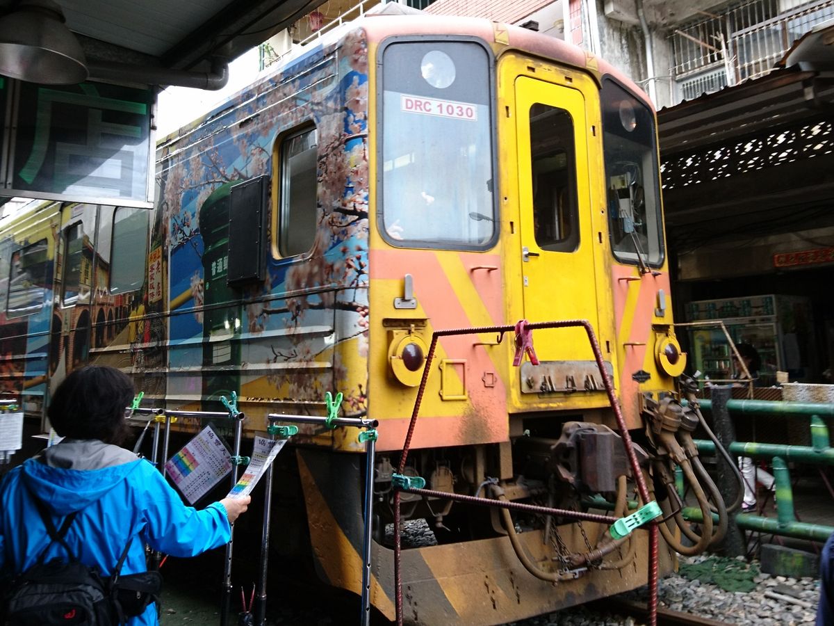 その後バスで天燈上げの場所に移動、4面の願い事を書いて線路のど真ん中でスタッフが写真を撮ってくれ火をつけて一緒に天燈を持ち上げ願い事が天に向かって上がっていきました。他にもいろんな種類の色の天燈がありましたが次回は違う色で上げてみたいですね。列車も通過してました。バットマン猫を見ました(笑)駅が近くにあってローカル列車に乗り込み(冷房が強く寒かったです。)九分近くの駅へ。バスに乗って途中で混合バスに乗り換え九分へ。ランチは円卓で思っていたより品数があって美味しかったです。約2時間の自由散策でしたが霧がすごくて麓の方は何も見れませんでした。雨が降らなかっただけ良かったです。提灯がたくさんある九分の街並みを堪能しました。帰りの混合バスはスリルがあってちょっと驚きでしたが。
