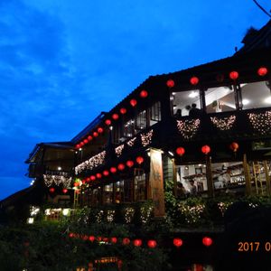 九份では『海悦楼』のテラスで冷たい金柑茶を飲みながら夕刻を待ちました。素晴らしい紺碧の空と赤い提灯のコントラストがタイムスリップしたようでノスタルジックなひと時を過ごすことができ大変感動しました。