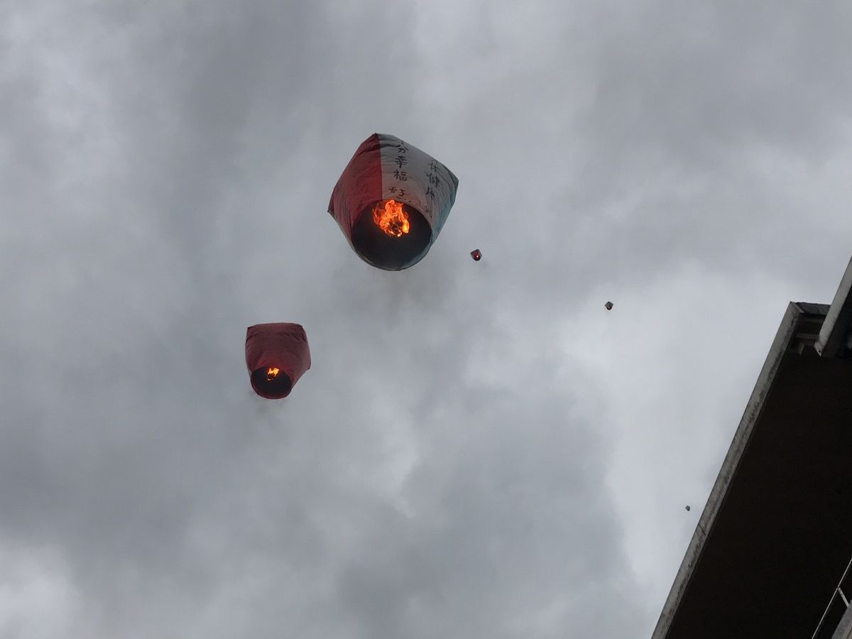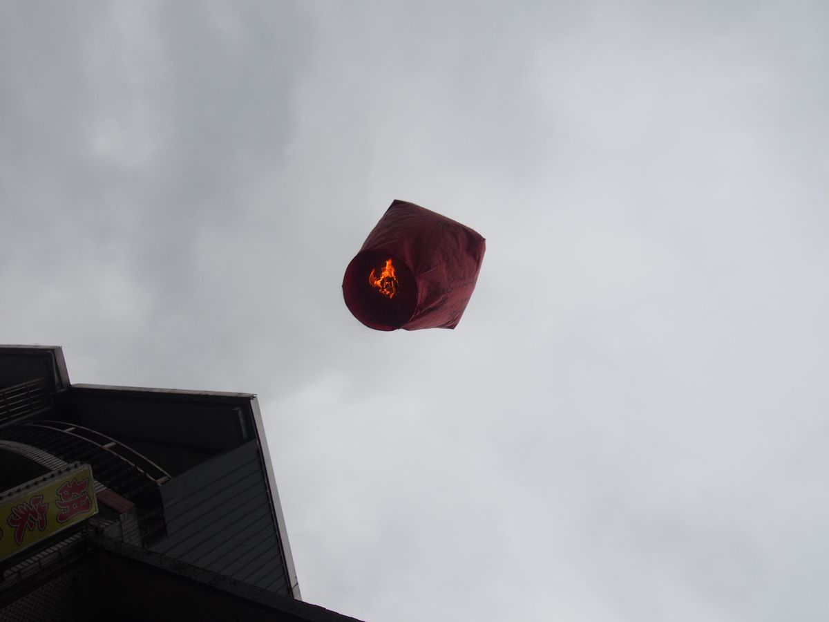 十フンでは友達M子の念願だった天燈上げもでき、悪天候や大混雑が