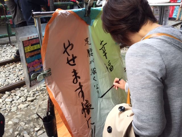 やはりまず十分での天燈上げの体験、正月だったので家族一人一人の今年の願いを書きました。