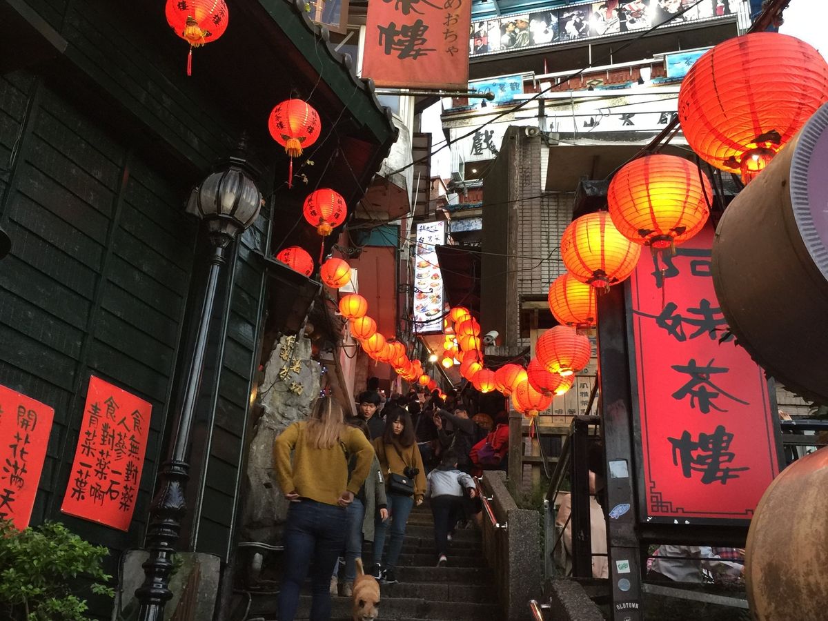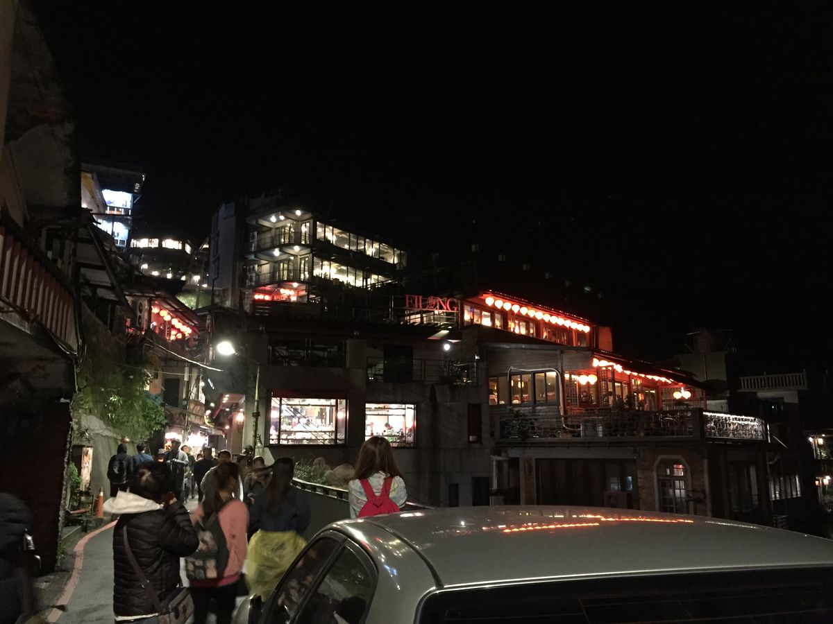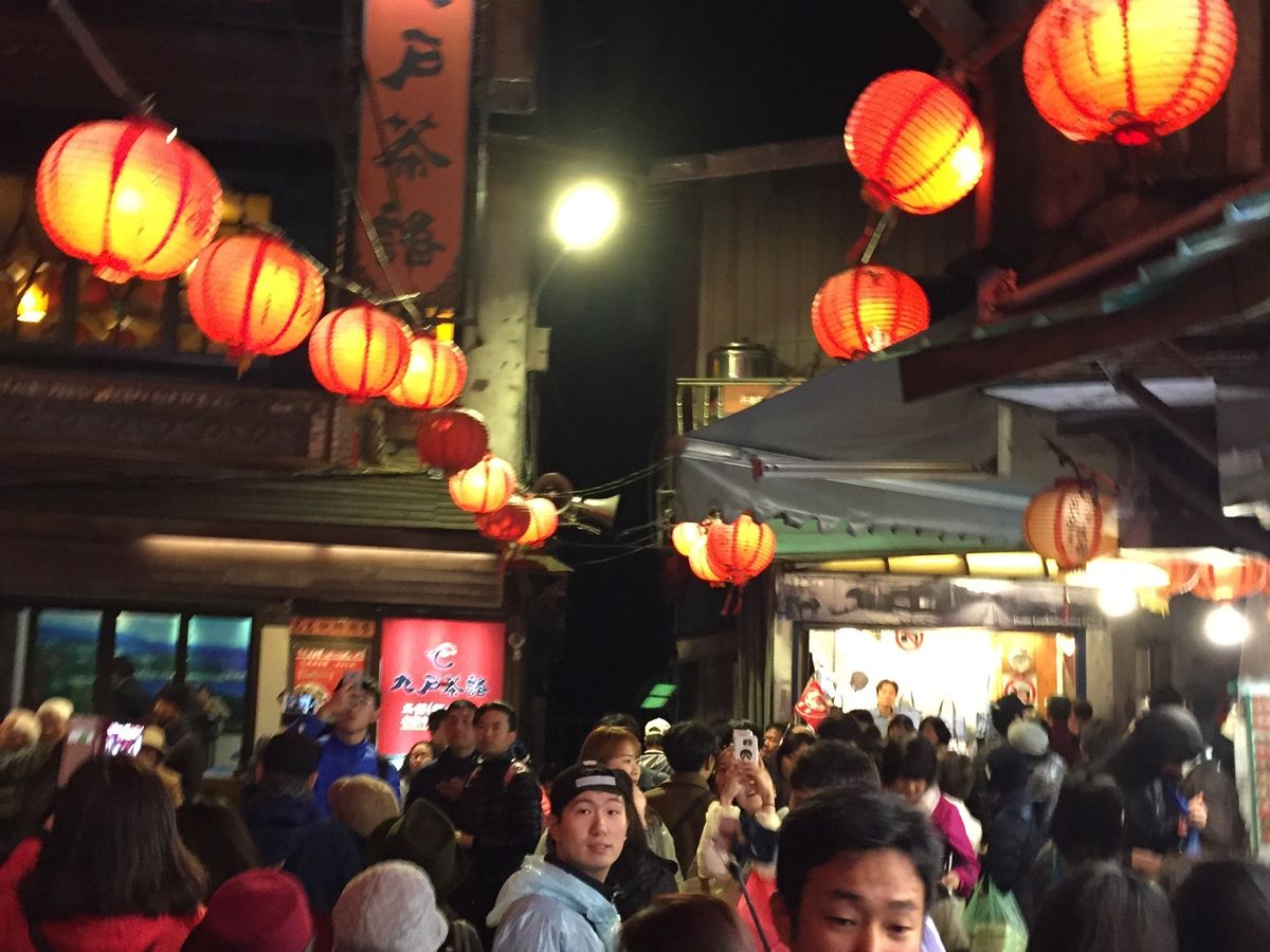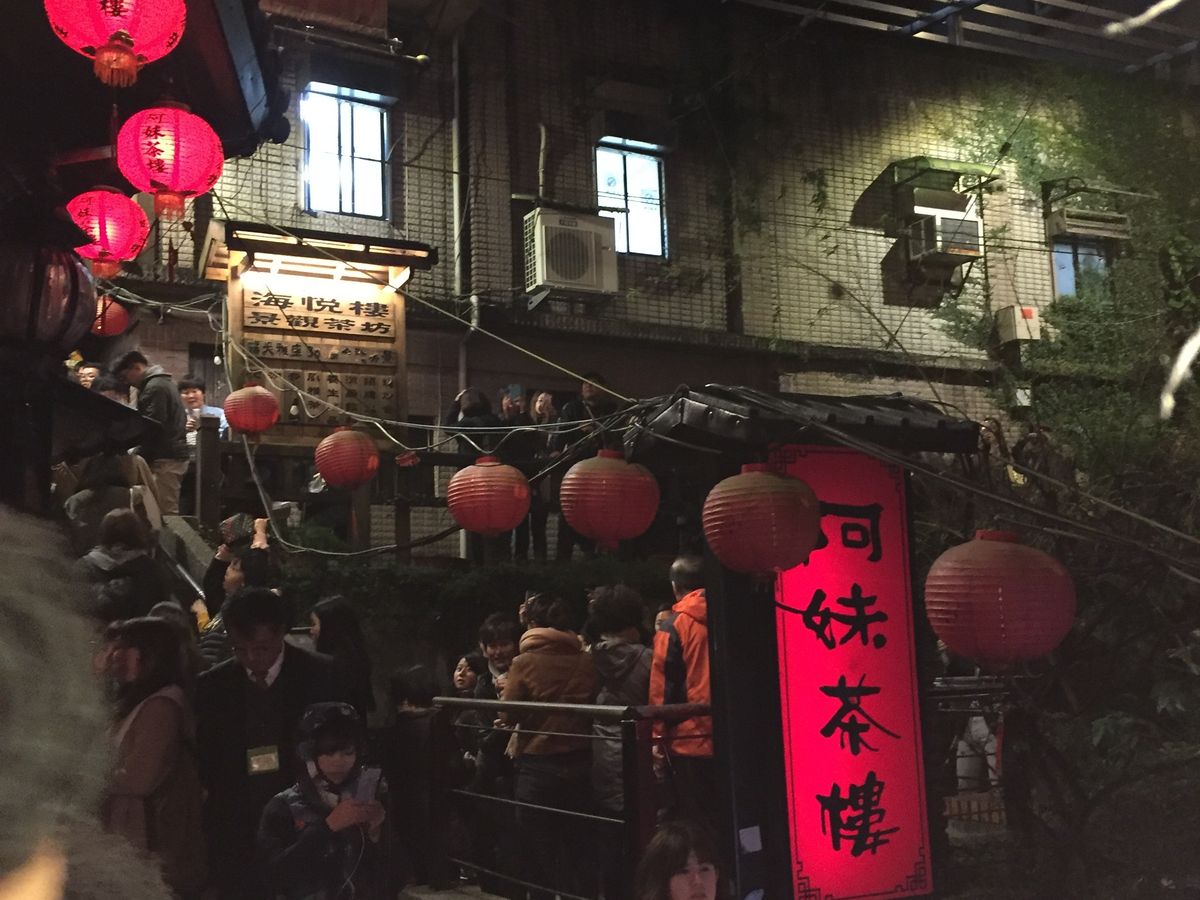 社員旅行で参加しました。専属ドライバーさんは日本語がとても上手でおしゃべりも弾みあっという間に九份に着いちゃいました。九份は寒く前日の雨で提灯の電球がショートして半分灯りが消えていましたが雰囲気もたっぷりで異国情緒あふれていました。