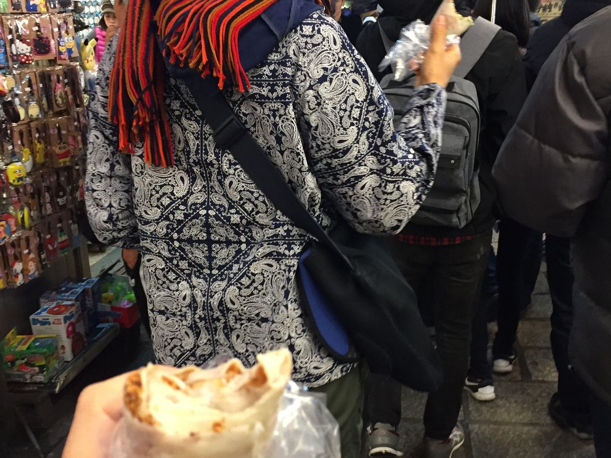 饅河夜市では、お目当ての胡椒餅を食べながら夜市を回りましたが、食べにくかったので途中で立ち止まって食べました。