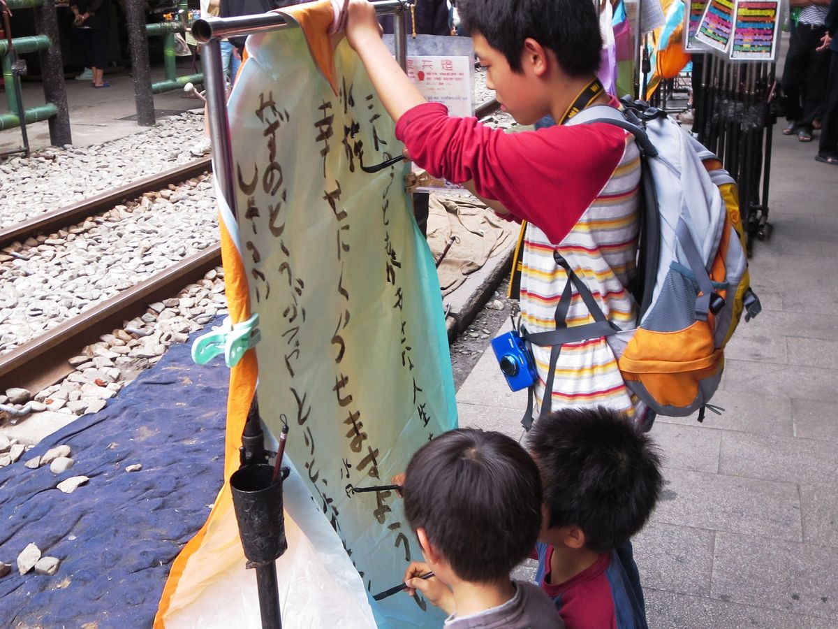 九份では、人の多さと臭豆腐の匂いに悩まされましたが、雨に合うこともなく見物できました。とにかく人が多いので、迷子にならないように、大人どうしでも腕を組むなり、手を繋いだりしてくださいね。そして階段も多いので、歩きやすい靴がお勧めです。疲れたら、阿妹茶酒館でお茶するのも良いですよ。イケメンのお兄さんが美味しい烏龍茶を、目の前で淹れてくれます。