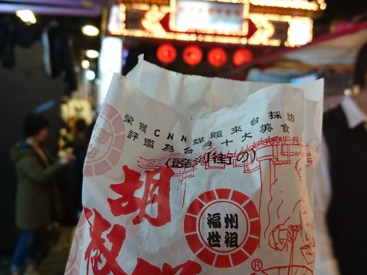 九份の後、夜市に向かう。胡椒餅を買い求め、熱々を路上で食す。ネギが多かったり、少なかったり、画一ではないようだが、皮がパリパリ、もっちり、中の肉餡はジューシーで美味しかった。