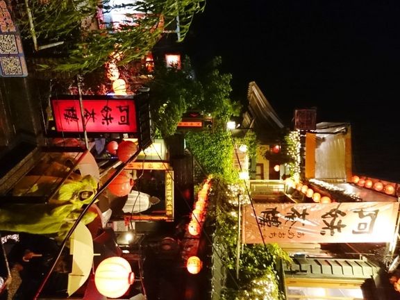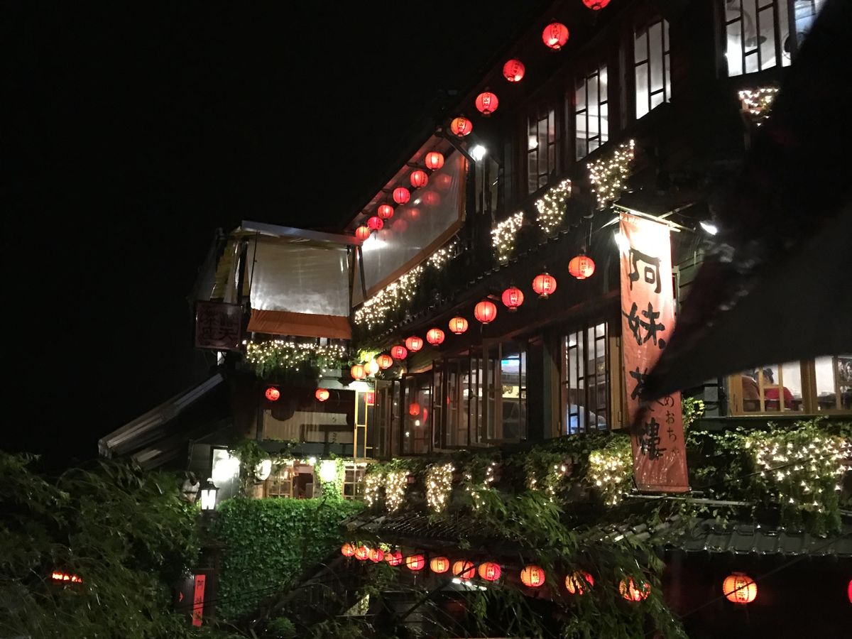 夜景は、雨の影響もなく九份自体の灯りと海辺の灯りが綺麗であった。