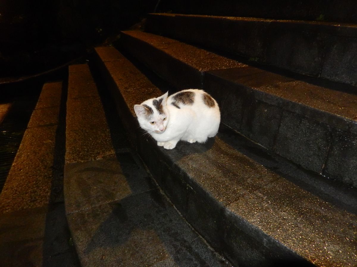 バスに戻る頃には、雨もやみ、人も少なくなり階段には猫が座って見送りをしてくれた。