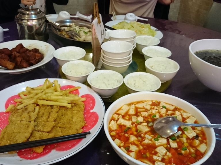 バス降りてレストランへ。軽食と書かれていましたがおかずの品数も多数あり、普通の食事のようでした。