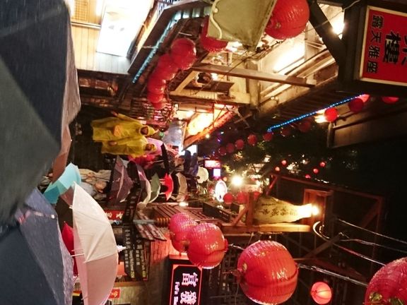 私自身は2度目の訪問でしたが、九份初訪問の家族と一緒に参加しましたが、台風並の強風と雨で、さんざんな結果となりました。私が初訪問したときは晴天で、今回のような天候ではなかっただけに、つくづく雨に当たらなかったのはラッキーだったなと思いました。初訪問の家族にもこれはこれで良い思い出になったと思います…