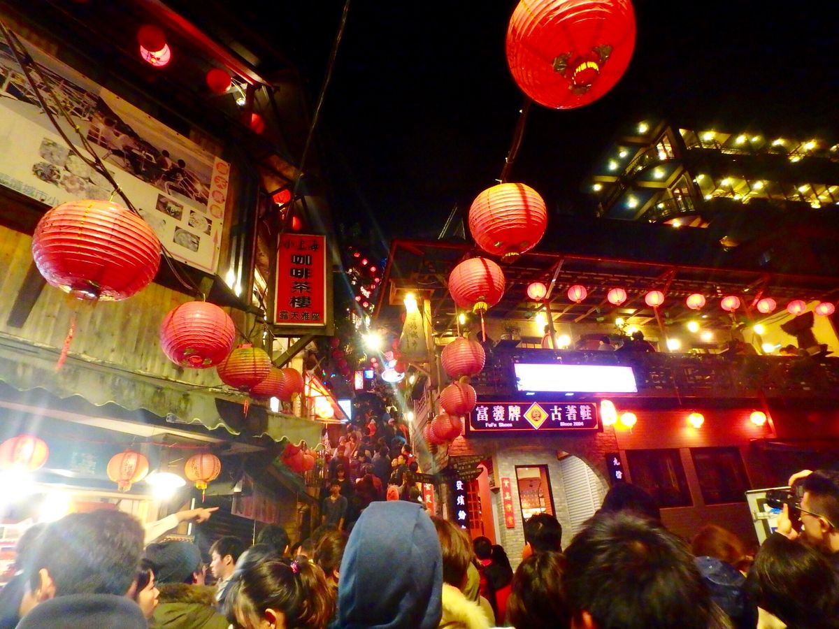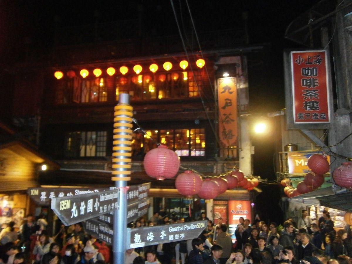 年末だったせいか、バスツアーの到着が同じせいか九分はめちゃくちゃ混んでました~でも、お茶屋さんはとても空いていて、とても美味しいお茶をいただくことができ、素敵な時間を過ごす事が出来ました夜市は、お腹がいっぱいで何も食べることができず残念でした。個人で行くには、とても大変だったと思うのでツアーを申し込んで良かったです。