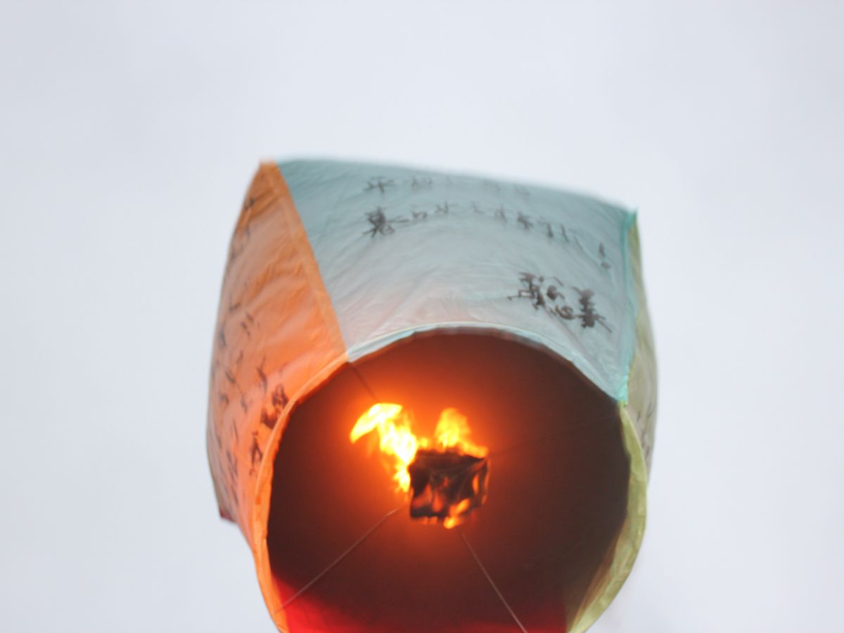 天燈に家族でワイワイ楽しみながら願い事を書き、上がっていく様子をスマホ動画で撮影していただきました。