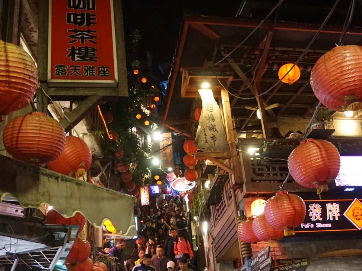 大混雑の九分ですが、赤い提灯の光と、遠くに見える町の明かりが幻想的で、夜の闇が混雑をも飲み込み大変楽しい散策ができました。