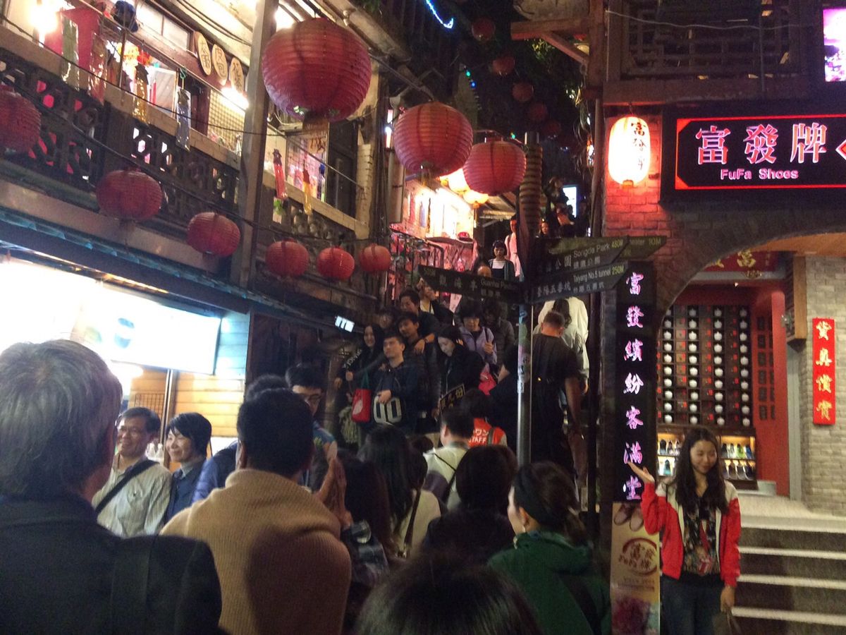 土曜日だったのでかなりの混雑は想定内だったものの、それを上回る人・人・人。それでも赤い提灯の街並みとレトロな雰囲気とを充分に堪能し、たっぷり写真を撮り、(高いけど)美味しいお茶を飲み、台湾に来た~!を実感できました。