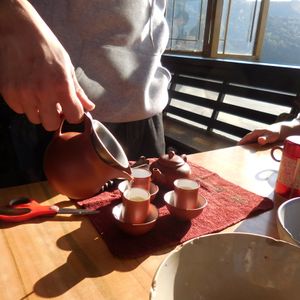 3番目に九分→ガイドさんおすすめのお店に連れて行っていただきました♡観光客が少なく、景色も抜群に良い所☺おすすめの台湾料理を一緒に食べ、お茶も頂きました。お茶は、茶器を温める所から始めるような、本格的な入れ方で。とても深みがあって美味しかった♡それも全部ガイドさんがやってくださって。日が沈むまで、ずっと話しながらお茶を飲んでました。贅沢な時間だった~(^^)