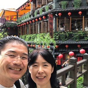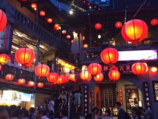 九分とても楽しかったです。連休中とあつてとても混雑していましたが林さんのお陰で無事着き、お茶屋さんで美味しい台湾式作法で楽しくお茶を頂き至福のひと時を過ごすことが出来ました。人の多さにびっくり、景色の美しさにビックリ、感動でした。その後の夜市でも人の多さにびっくりでした。話題の胡麻餅も頂きましたが大変美味しかったです。でも、あのニオイだけは苦手かな。でもとても楽しかったです。今回のツアーで何よりも感動したことは林さんの誠実さと、台湾の人達の親切さ、マナーの良さでした。日本人もマナーは良いと思っていたのですがそれ以上でした。その後の台湾での旅は続きましたがとても楽しく良い旅となりました。ありがとう。シェイシェイ。