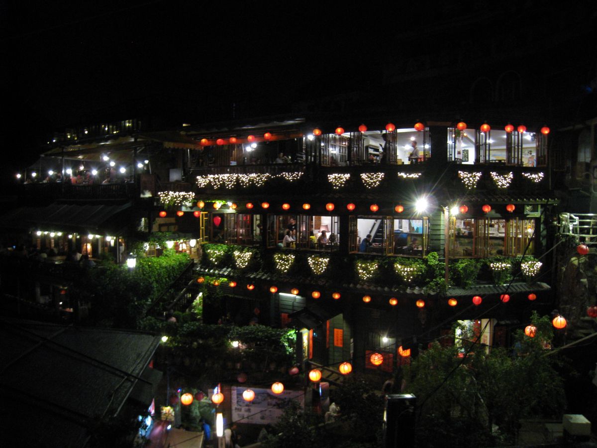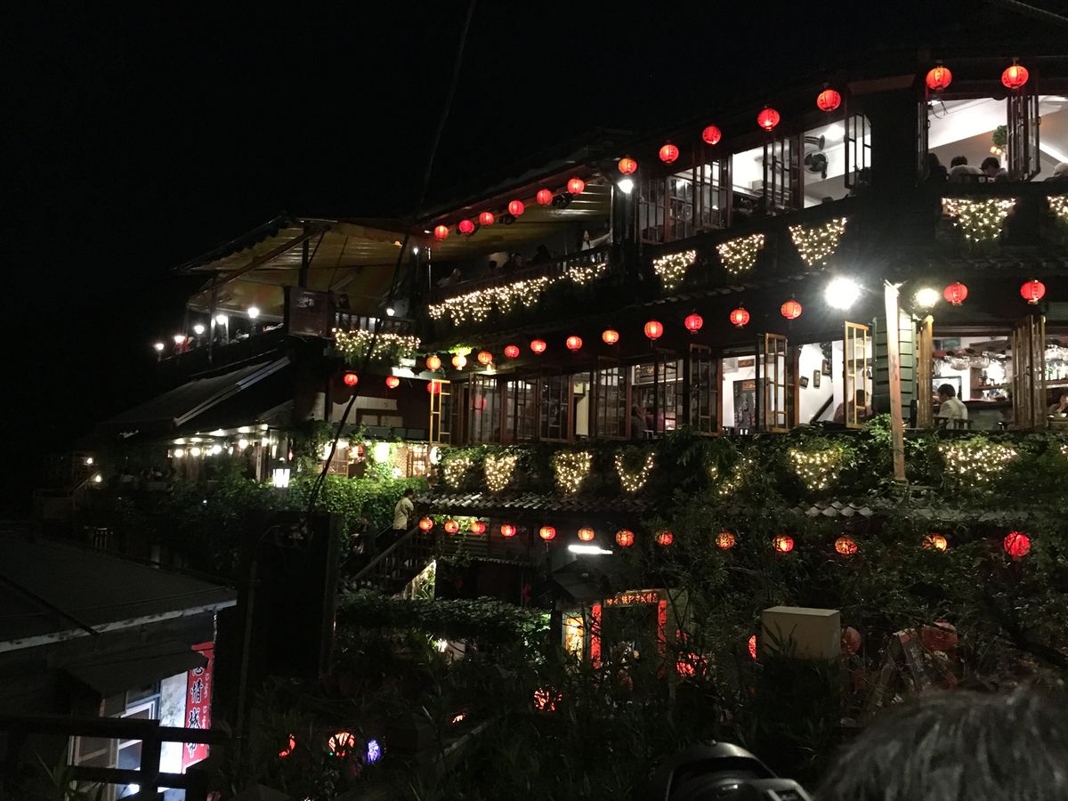そしてまず最初に案内していただいたのが十分滝でした。前日まで雨が降っていたとの事で水量も多く思っていた以上に雄大に見えました。思いの外近づけるのでチョットだけこわかったかなそれから天燈上げをしましたが、夕暮れが近づく中、願いを書いた天燈が昇っていくのを見るのは思っていた以上に心に響くものがあり暫く空を見上げ動くことができませんでした。そして九分 平日でしたが多くの人が訪れていて色々な国の言葉が飛び交い、日が沈んだ後の町並みは赤い提灯が燈り異国情緒満載、眼下には港に大きな船とても素晴らしいロケーションのなかでゆっくりとお茶を堪能しました。帰りは夜市に送っていただき、牡蛎オムレツ、胡椒饅頭等々、台北の夜を満喫しました。