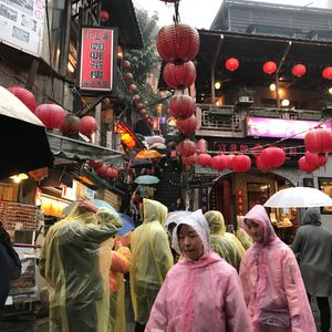 九份に向かう途中からどしゃ降りの雨で先が思いやられましたが、日本から用意したカッパで武装。何とか一通り巡ることが出来ました。