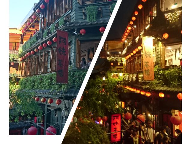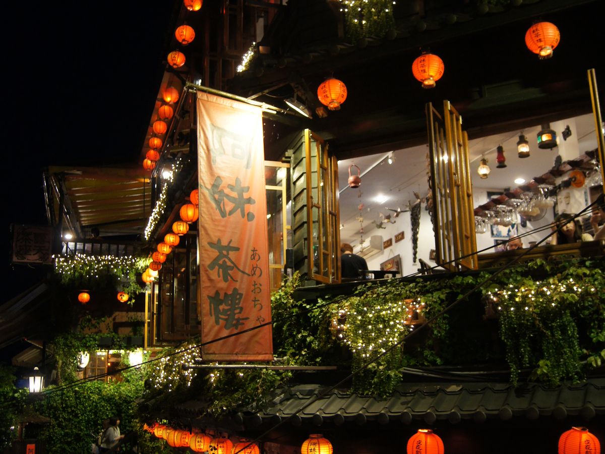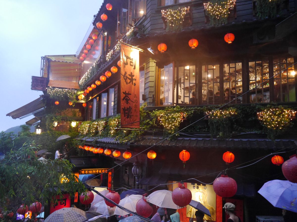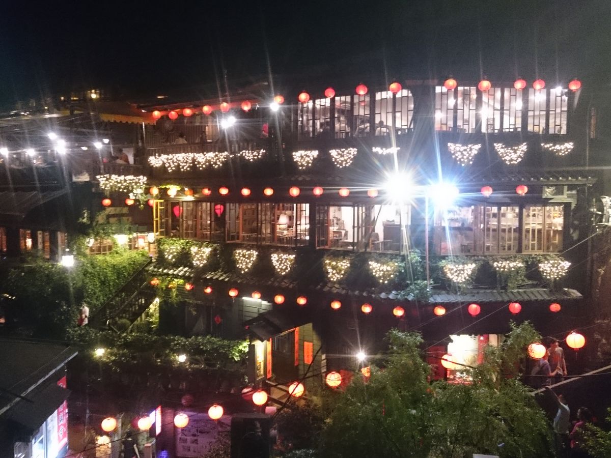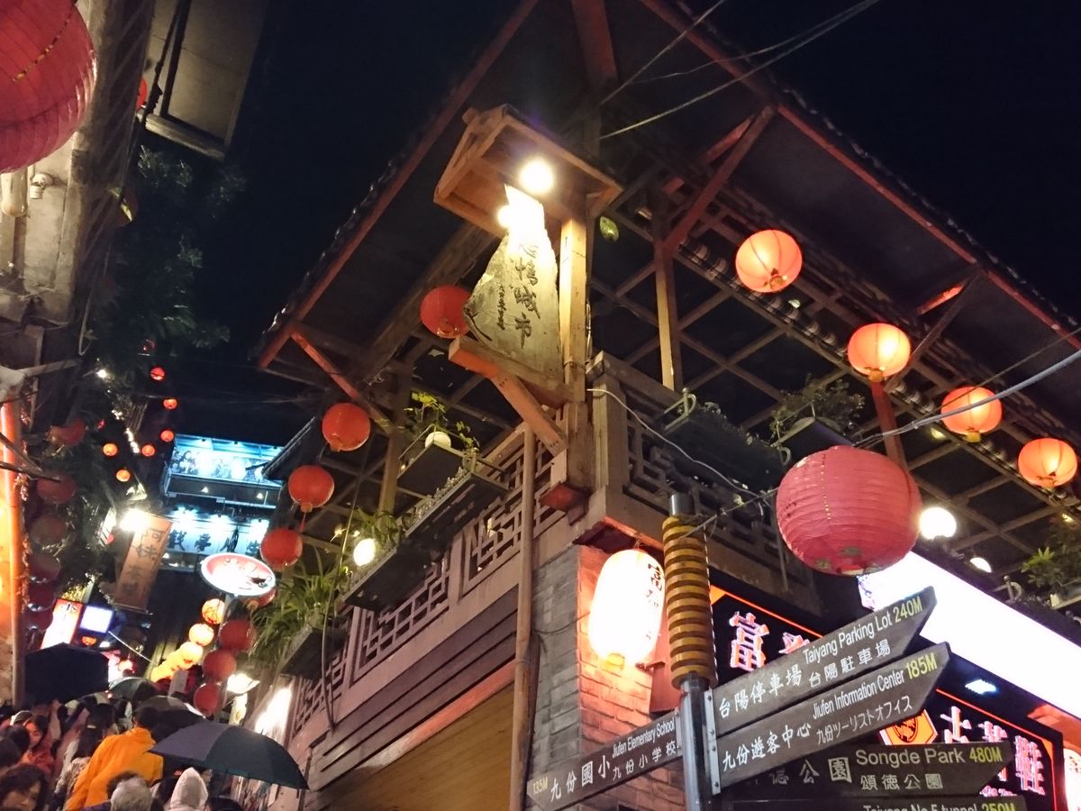 十分天燈上げではちょうど電車が通過するのも見れましたし、九份では提灯の明かりを見ながら