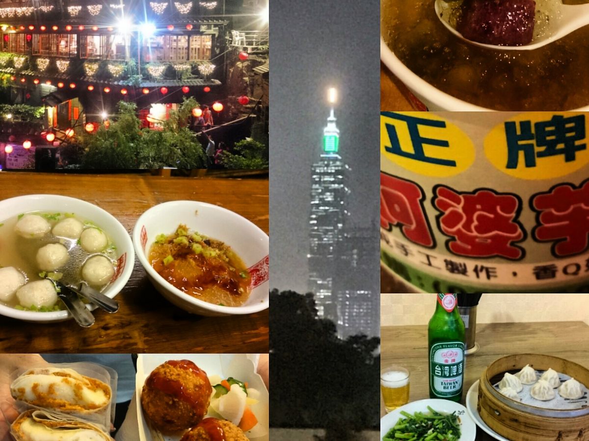 飛行機で到着日、ホテルチェックイン後15分後にホテルの部屋に電話があり、「もう着いていますのでよければロビーへお越しください☆」とのこと。予定より30分程早かったですが、大正解。余裕をもって十分滝に行け、マイナスイオンを浴び、天燈上げも夕暮れ前、その後1時間に1本の電車も見届け、すっかり夜に‥。他のお客様の赤い天燈が上がっていくのがとてもキレイでした。もちろん、写真も動画もしっかり撮ってくださいます。そのまま九份へ。混んでいると構えてましたが、平日だったのか、そうでもなくスイスイ歩けました。そこでもいい写真がたくさん取れました。やはり夜が情緒あふれる雰囲気でステキですね。手書きのわかり易いカワイイ地図をもらい、オススメのご飯を教えてもらい、食べ歩き‥。魚のつみれスープ、春雨、クレープアイス、海老だんごコロッケ、タロイモあんみつ冷たいの、小龍包に空芯菜にビール。2人でシェアしながらいっぱい食べました。これだけ食べても500元弱。安い。そして美味しい。欲しかった石鹸も買いました。その後、お迎えに来てくれてそのまま、101タワーの見える夜景スポットへ。写真に収め、最後は夜一へ連れてってもらいそこで終了。夜一名物の胡椒餅も教えてもらい、また食べました。