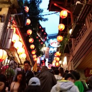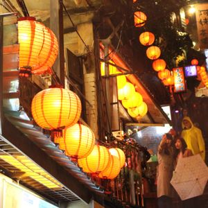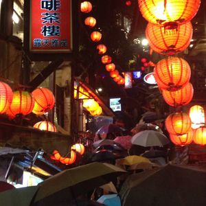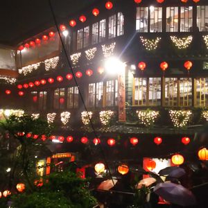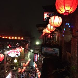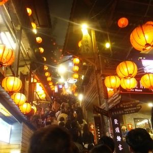 3月19日に九份ナイトツアーに参加しました。3連休中日の日曜で混雑するのは当たり前ですが、九份ビギナーにはつらいツアーでした。当日小雨状態で、台北市内金龍土産店で集合しバスに乗車後、失礼話しですが、アルバイトのような若い男の子が添乗員としてバスの中で九份についての説明、本日の工程、などを説明しながら手書きの九份マップを2名で1枚と配布しました。バスが先ず到着した駐車場には、非常に多くの観光バスが既に並んで駐車しており、ここから日曜なので地元のバスに乗り換えるルールということでしたので、雨の中長い行列に並びバスが来るのを待つ、そしてようやく地元のバスが来て乗車早々に九份近くの駐車場に到着、ツアーにセットされた簡単な夕食(軽食)を食べ集合時間だけ言われ、各々各人で勝手に観光して来いという式で駐車場からどっちに行っていいのかわからず、適当にバスやタクシー自家用車がバンバン走る細い危険な道路を歩きさまよいかなりの時間をかけて有名と言われる商店街に続く場所に着きました。しかし、そこはまともに買い物もできないような大混雑の中、(これはしょうがないでうね)最も有名な階段続きの茶屋へ向かう階段は、ほぼ全く動かないほどの大渋滞で万が一上の人が倒れようものなら将棋倒し間違いなし状態!時間をかけ超スローな階段移動で少し広い場所に着いたら、もう二度と階段を登れない状況。仕方なくバスの駐車場へ歩いていくことになりましたが、また、戻る道が分からない、夜ですからなおさら方向もわからず案内人もいないので、本当に駐車場に戻れるか心配でほぼ感だけで民家の前や後ろなど階段のある場所を探して大きな道路に出て戻るが、またもやバスやタクシー乗用車が走る細い道しかなく危険危険!私は2度目の九分ツアー利用者ですが、まったく初めての方には、ちゃんと九份観光地を先導して案内が付くツアーをおすすめします。どうかツアー催行の方たちも、安全に観光できるツアーを行って欲しいです。!!