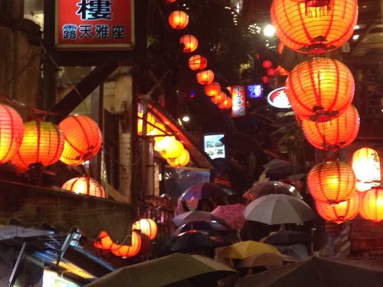 九分は雨で散策が大変でした。また、九分は階段や坂道が多すぎるので、これもお年寄りと小さな子供やベビーカーは相当苦労すると思います。私が行ったのは雨降りの平日の午後でしたが、それでも混雑していて、九分の細い道でのすれ違いは大変だったです。また、草餅やぜんざいがおいしいとのことでしたが、そうでもなかったかな・・・。台北市内の方が屋台のレベルは高いように思います。