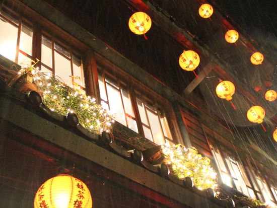 町中が狭いので傘をさしての散策となりましたが、夜の幻想的な景色はとても良かったです。