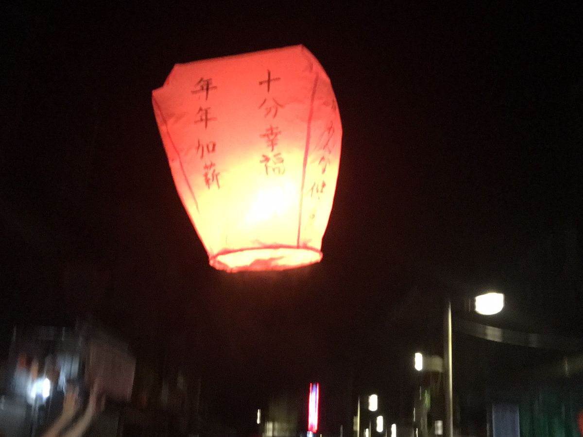 長年、十分の天橙上げをしたくて願い叶いました。九份観光も夜と昼では雰囲気が異なり、昼の観光はこれもまた良いものと思いました。ガイドのお兄さんは、本人曰く日ハムの大谷に似ているとか。日本にいた事も有るそうで日本語は堪能でツアー客は何ら言語的な問題は生じていませんでした。