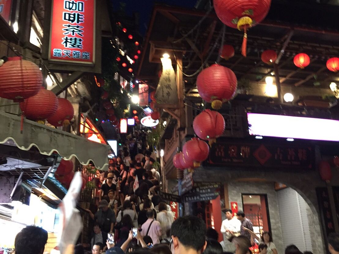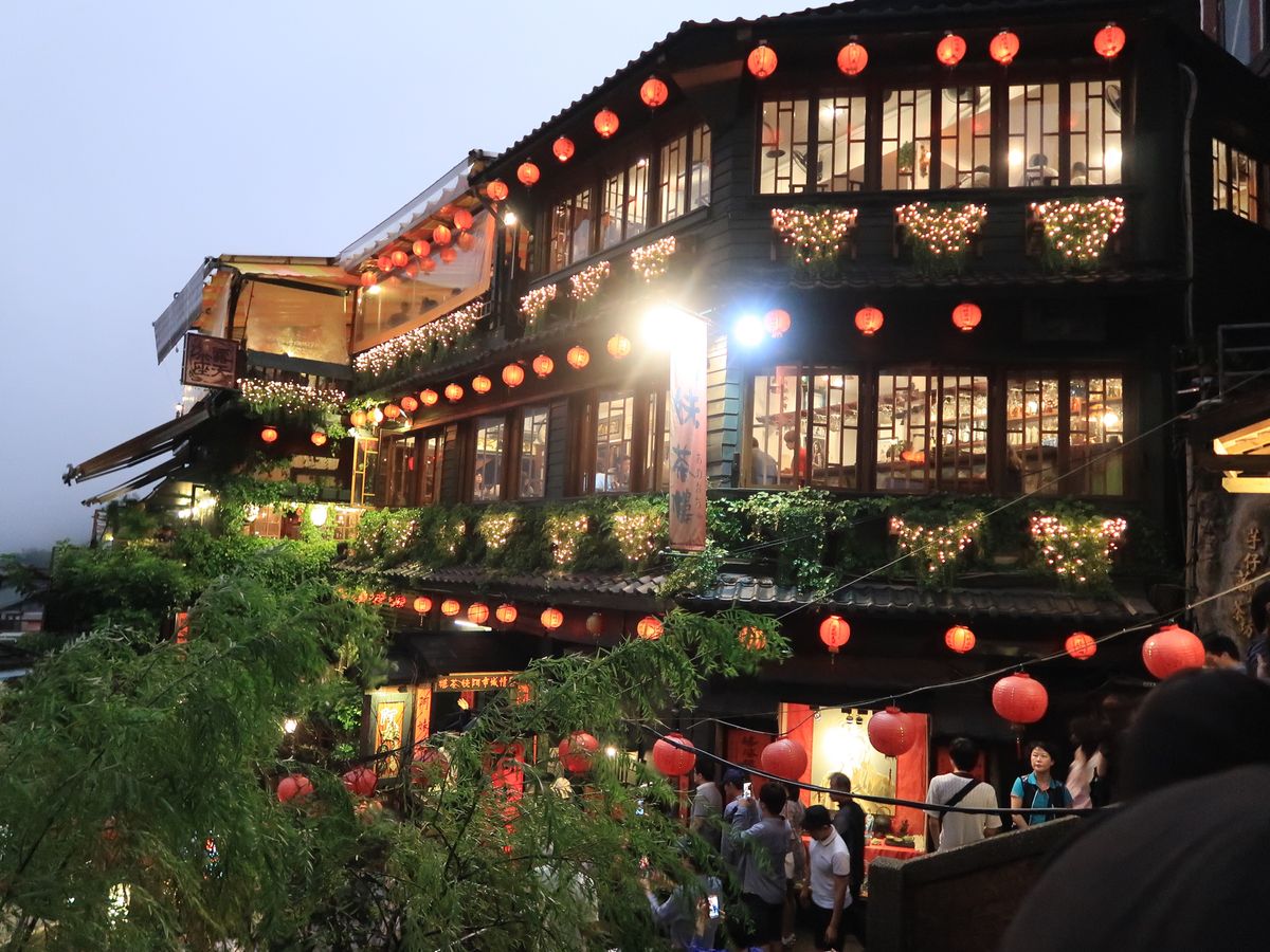 ガイドさん曰く九份でサンセットが見られるのは超ラッキーさんだそうで、その超ラッキーさんになれました。有名店台湾茶を美味しくいただきながらみたサンセットはとても美しく、サンセット後ライトアップされた町並みは正に千と千尋の世界でした。