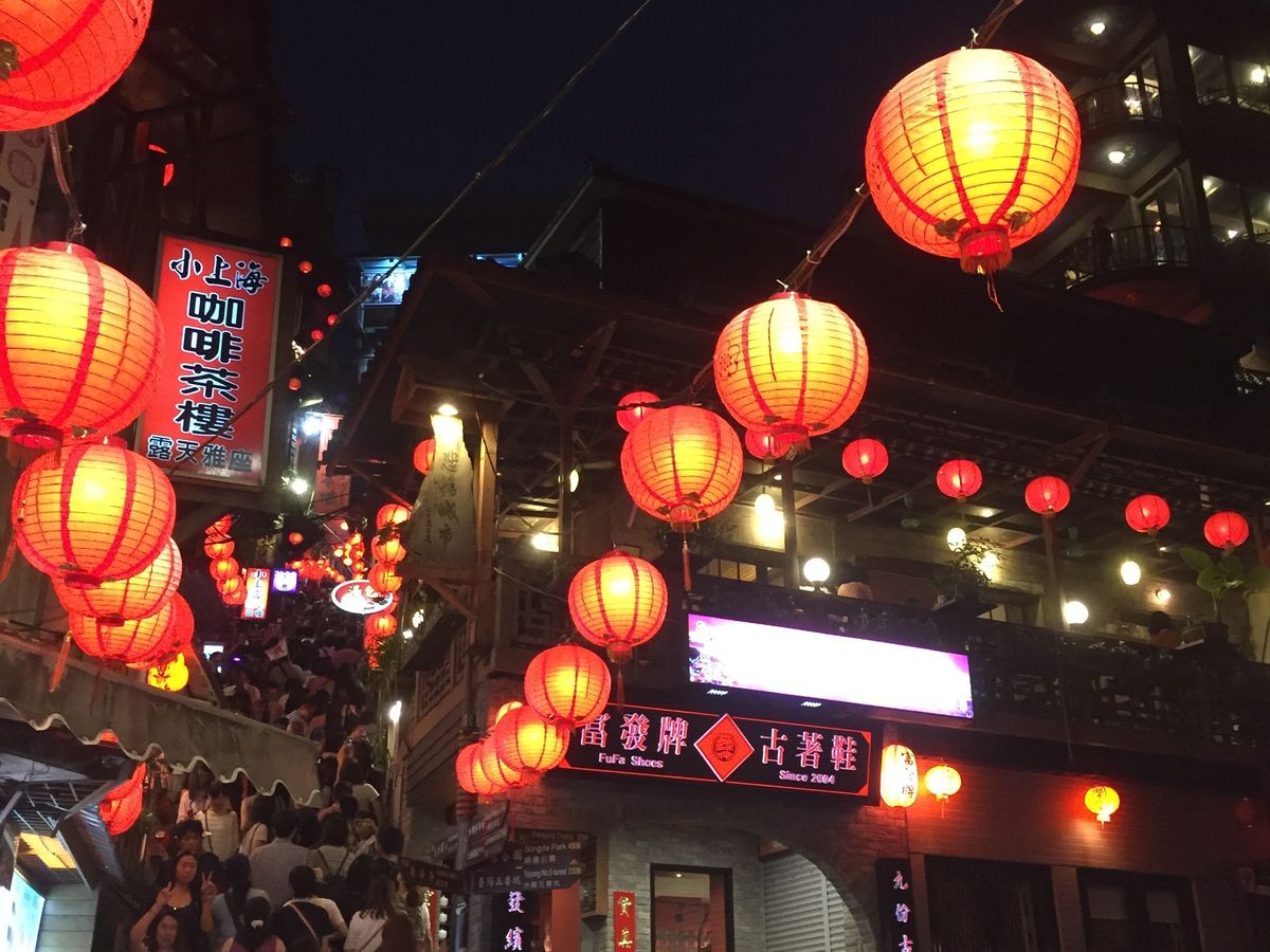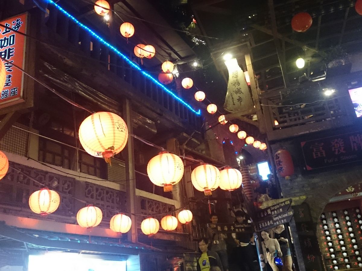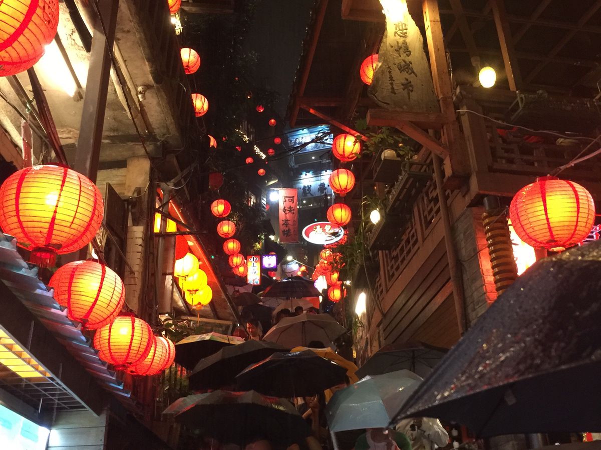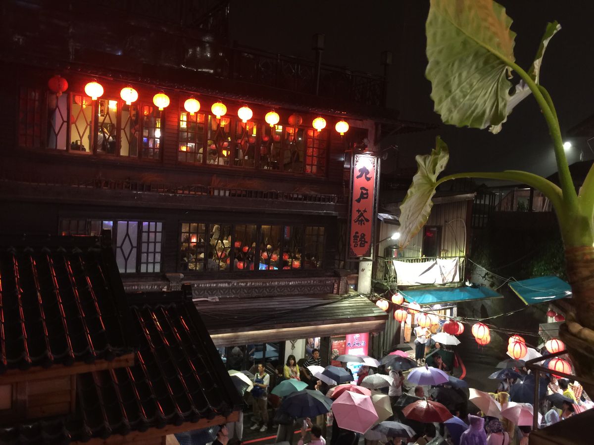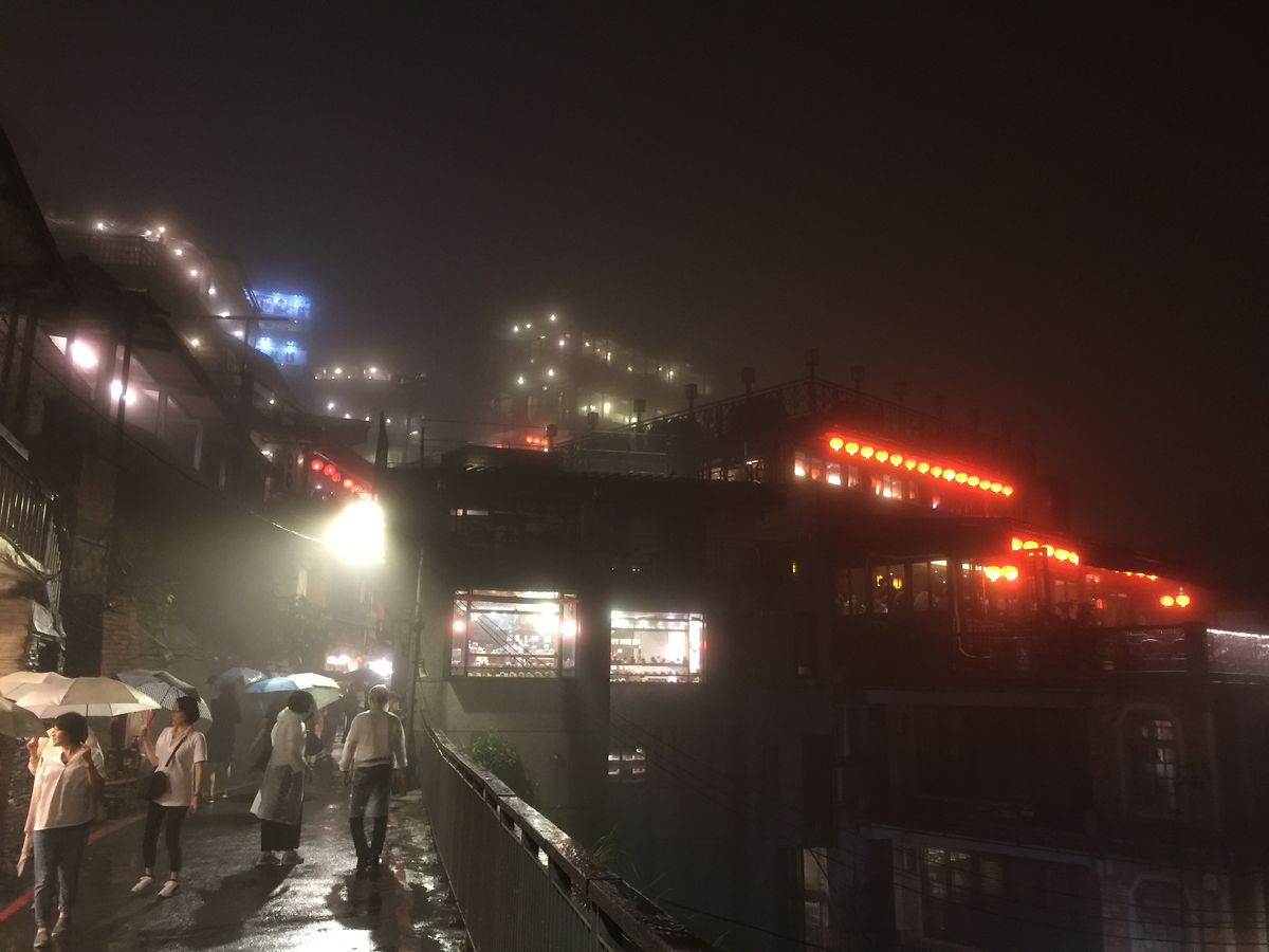 九分には3度目ですがいつも雨だったように思います。雨は雨で趣があっていいかもしれません。午後の部に参加しましたが、昼と夜の顔がどちらも見れてよかったです。道が狭いので雨が降っていたら傘をさすのではなくカッパの方がいいです。入り口で300円ぐらいで売っていました。