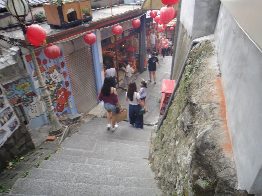 九份内では無料休憩広場などがなく、休むとしたらお茶屋さんに入るのみのようです。階段も多く意外と体力が必要です。