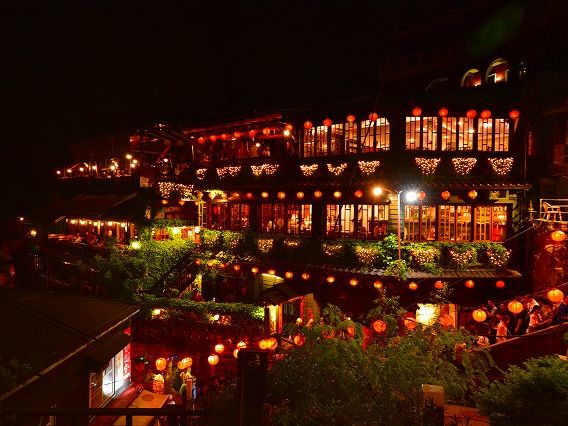 九分へは、十分の後の到着で7時頃でしたが、ちょうど提灯が灯り出していて、すぐ夜の風情ある風景を楽しむことができました。
