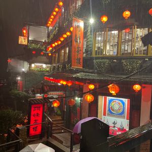 九份では、千と千尋の神隠しのモデルとなった建物(阿妹茶樓(アーメイチャーロウ))の撮影スポットを教えてくれるので、そこで撮影することをお勧めします。また、阿妹茶樓ではお茶とお茶菓子を食べることが出来ます。ただし、九份もかなり時間がないので、阿妹茶樓で食事をすると、そのほかのお店をゆっくり見る余裕はありません。あらかじめ見たいポイントを決めておいて効率よく回るのが良いと思います。雨の中、狭い階段が多いので、雨に強く滑りにくい靴をお勧めします。