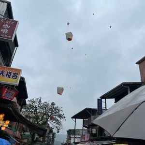 ガイドの朱さんの判断で十分からの九份へ変更となりましたが、これが大正解でした。タイミング良く雨が上がり、濡れずに天燈上げが出来ました。思っていた以上に空高く天燈が上り、とても幻想的でした。