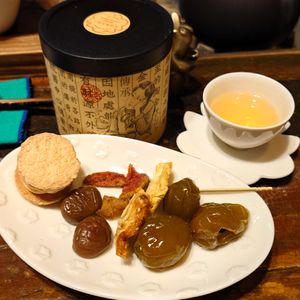 九份茶房では見晴らしの良いバルコニーではなく、暖かい中の席でお茶とお菓子をいただきました。雰囲気もよくゆっくりでき大変満足です。