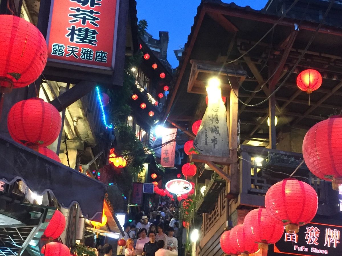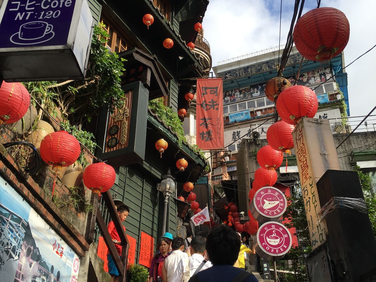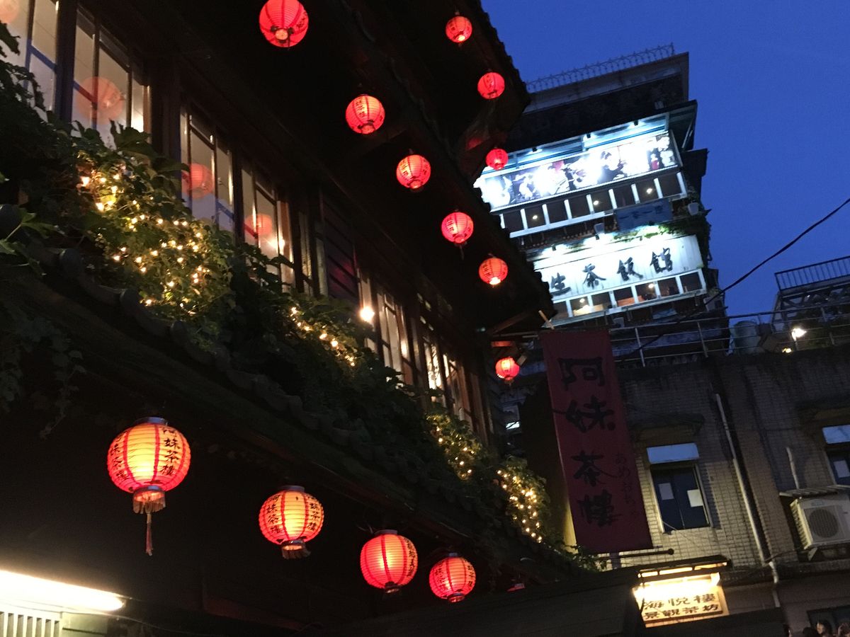 台湾に午前中に到着し、夜のツアーに参加しました。夏休みで人気観光地のため、人も多かったですが激混みではなく"ゆばーば屋敷"の阿妹茶樓も並ばずに夕日の見える2階テラス席に座ることができました。九份の夕暮れがとても美しく、夜の赤提灯の世界も華やかで"千と千尋の神隠し"の世界観に浸ってきました。