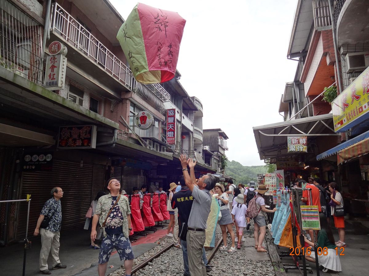 十分でのランタン上げは特におすすめです。1メートル以上もある大きなランタンに、筆で願い事を書き入れ、火を点けると、あっという間に青空に昇って行きました。とても迫力があり、日本では出来ない貴重な体験です。九份では自由時間が90分位ありゆっくり散策出来ました。希望者すれば、九份での現地解散も可能でした。本当にお得なツアーです。