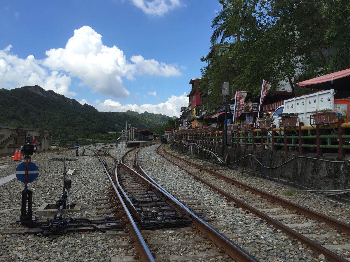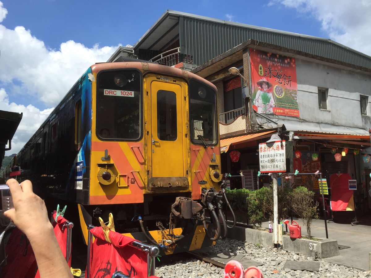 その線路を通る電車に乗って、瑞芳駅まで。 のろのろと30分くらい乗ったかな。