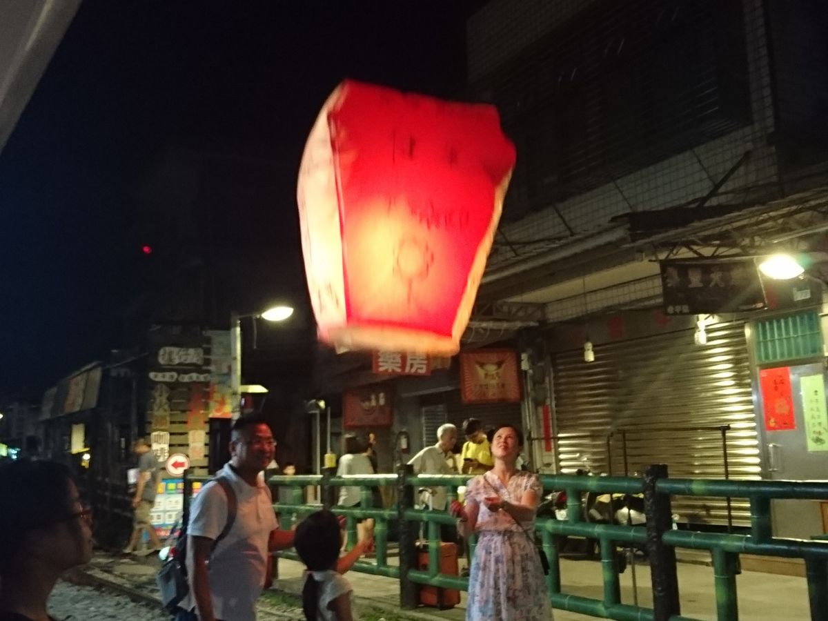 空港へお迎えに来ていただき、十分滝へ。適度な運動とすごいマイナスイオンで、その日は38度近くの温度だったにもかかわらず、涼しくすっきり.それから、天燈上げに。思ったよりずいぶん大きいランタンに筆で願いを書き火をともして舞い上げるその美しさにうっとり。場所が場所でいきなり通り抜けるローカル線にびっくり。最後は湯婆が居そうな小高い所にある九份のまちを歩きやすい位置から観光できるように連れて行っていただき夢のようでした。おいしいものも教えていただき最高です。ぜひ行ってみてください。